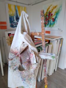 Here’s an artist who has found her own style: impressive, powerful works, carried by a harmony of pure colors from which seem to spring lines that are both figurative and poetic, and that flirt unabashedly with abstraction.